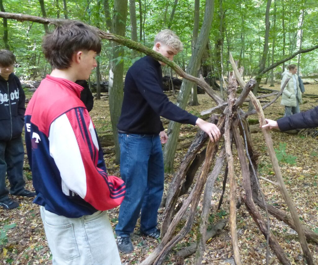 Das Tierreich kam auch nicht zu kurz: Wer ist Räuber und Jäger? Wer wartet abwartend im Dickicht? Ein lustiges Spiel… danach wurde ein Dachsbau besichtigt und das Verhalten der Eulen und Waldkäuze erforscht. Wie findet man seine Beute im Dunkeln, also mit verbundenen Augen? Auch ein „Nest“ musste gebaut werden. Manchmal fiel das etwas größer aus….
