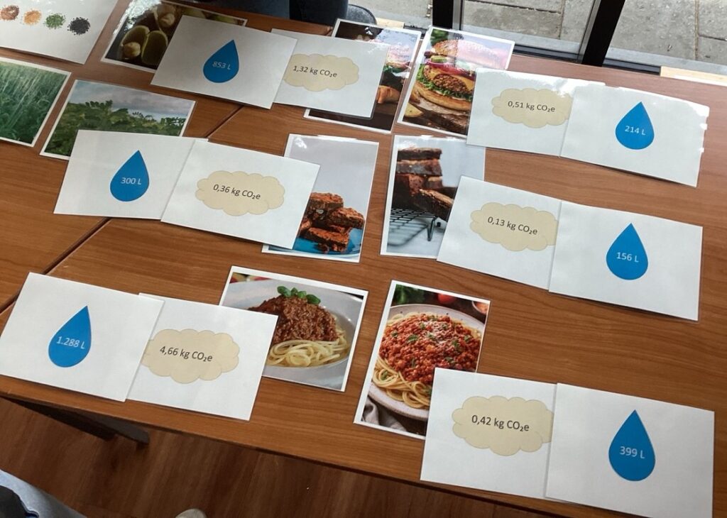 Im praktischen Teil des Workshops wurden Nährwerte verglichen und CO₂-Fußabdrücke verschiedener Proteinquellen diskutiert. Bei einer Verkostung durften alle ausprobieren, wie vielseitig Hülsenfrüchte in der Küche sind – von Erbsenaufstrich über Linsenchips und Schokomuffins mit Kidneybohnen. Ob die Linsenbolognese gegenüber einer herkömmlichen Bolognese geschmacklich gewinnt, werden wir im Unterricht ausprobieren! Der Inhalt des Workshops passt nämlich ideal zu unserem Unterrichtsthema Protein.